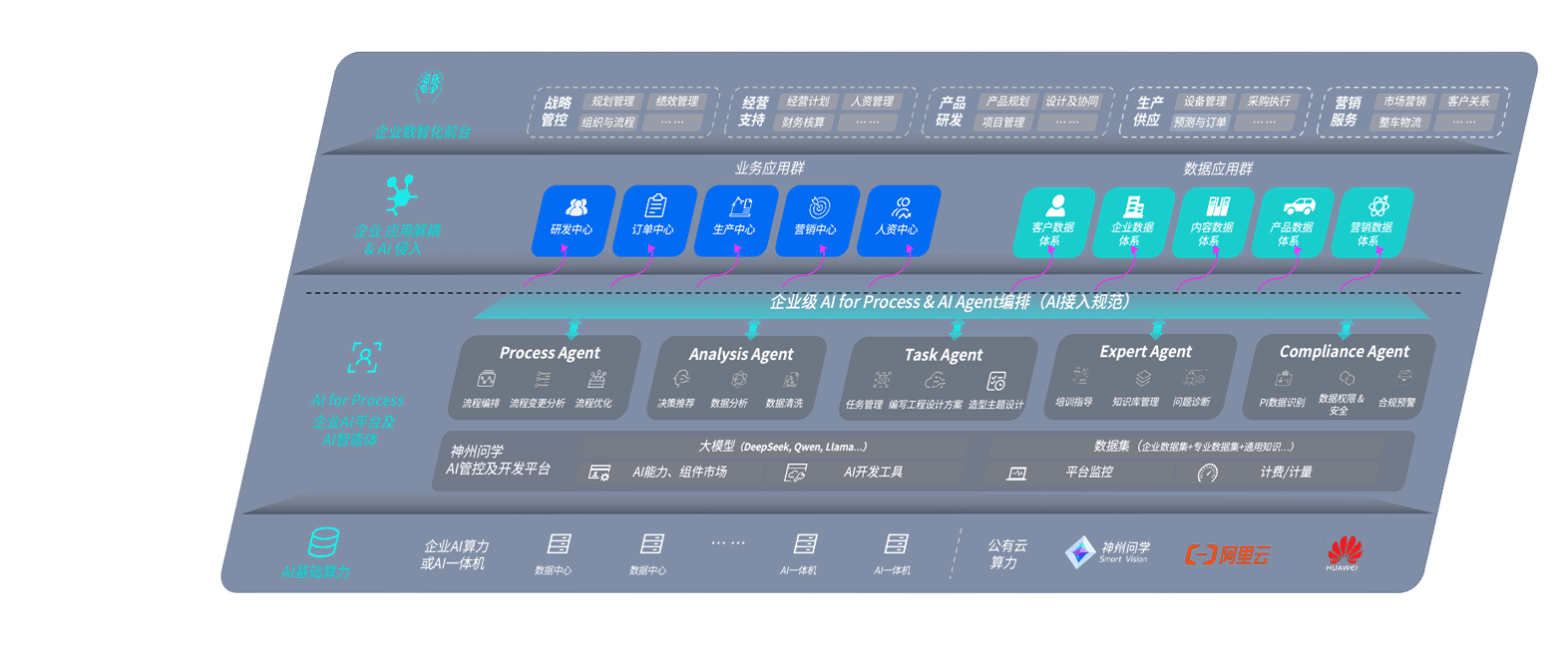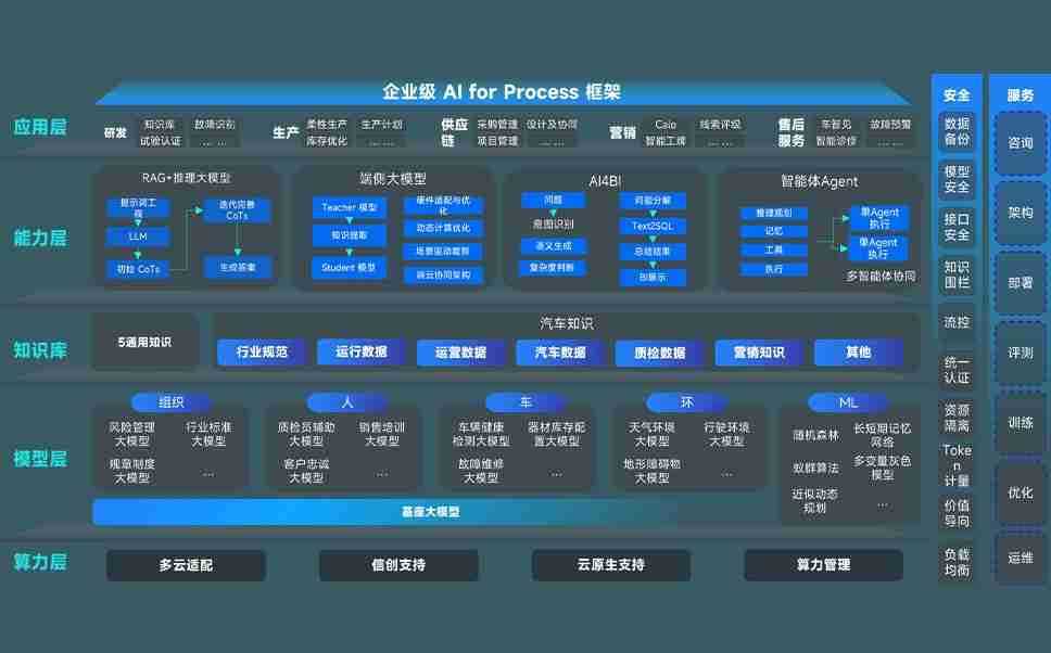 端到端的一站式AI工作空间深度融合了从企业战略规划到日常经营的全流程业务板块,,定向解决车企内部领域多、、部门多、、、、链条长、、、场景碎片化等难题,,,支持车企快速构建以AI为核心的生产力写作体系,,,,实现任务执行与AI能力的无缝集成与交互